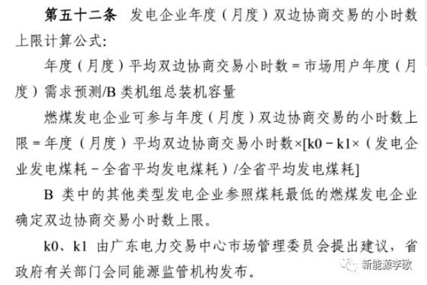 月度市場交易平均小時數=月度市場用戶總用電需求/B類機組扣除檢修后的總可用裝機容量燃煤發電企業月度市場電量上限=燃煤發電企業扣除檢修后的可用裝機容量×月度市場交易平均小時數×[k0-k1×(發電企業發電煤耗-全省平均發電煤耗)/全省平均發電煤耗]