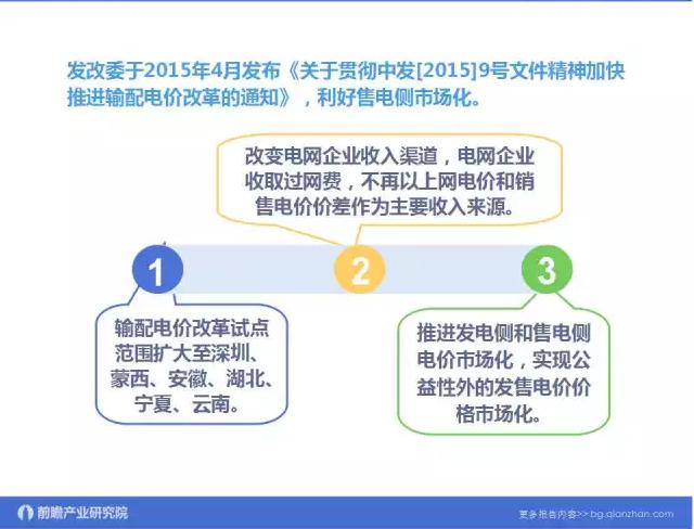 據(jù)媒體報(bào)道,電力體制改革6個(gè)配套文件即將出臺(tái),售電側(cè)改革試點(diǎn)進(jìn)入倒計(jì)時(shí)。新電改會(huì)帶來(lái)很多巨大商機(jī),比如售電制改革,鼓勵(lì)社會(huì)資本市場(chǎng)進(jìn)入,包括配電領(lǐng)域混合所有制改革。所以從售電公司角度看,更多的關(guān)注電