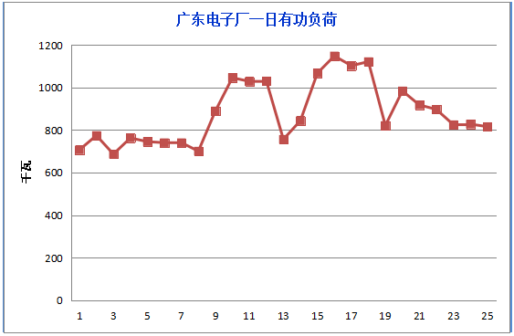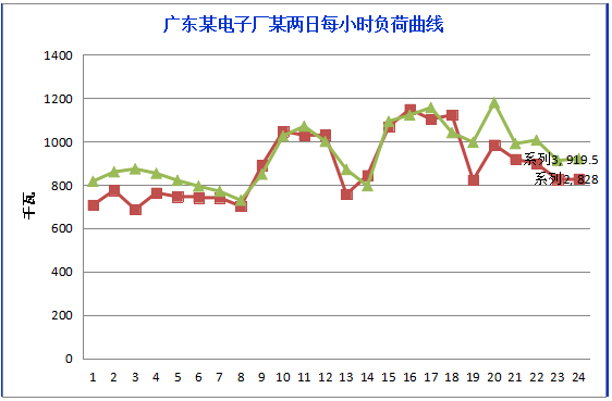 下面是廣東惠州某個電子廠2015年9月8日每小時的負荷曲線,很明顯,細化到每小時候的負荷波動就大多了。