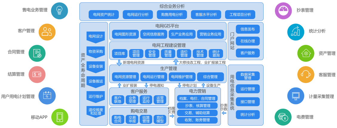 其自主研發的配售電一體化云平臺基于恒華科技自有數據中心,面向地方電力公司、獨立售電公司、配售電一體型售電公司及各類電力用戶提供云售電及配售電兩類差異化版本,集成規劃建設、生產管理、售電交易、營銷業務、配網搶修、客戶服務、電網GIS等功能模塊,為售電公司業務開展提供全產業鏈信息化支撐。
