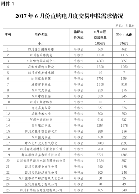 1.07億千瓦時 84家企業角逐四川6月直購電月度交易