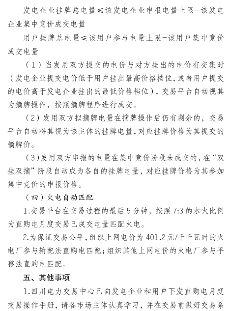 四川6月直購電月度交易將于明日(6月1日)展開,此次交易電量為1 07億千瓦時,用電企業按水火7:3參與直購電月度交易,有84家企業參與直購電月度交易。交易方式采取復式競價撮合交易方式,按水火比例7:3執行。交