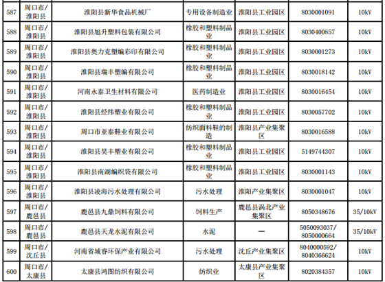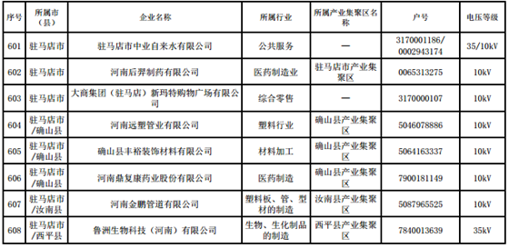 河南第四批新增608家電力用戶公示名單