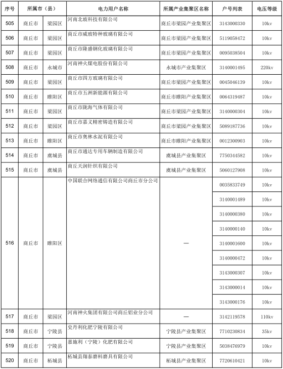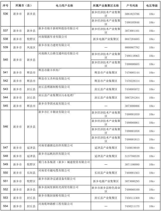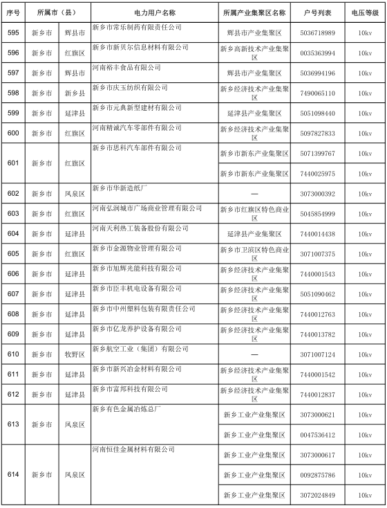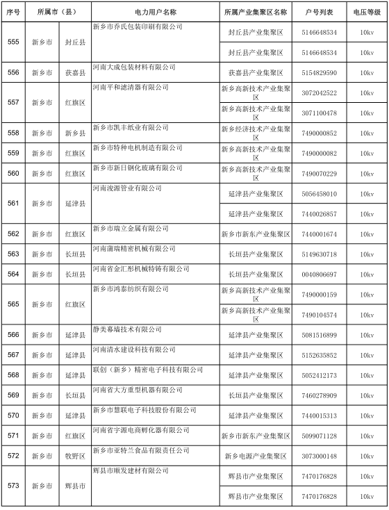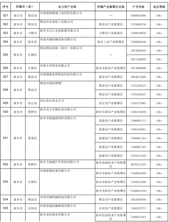 2017年河南省770家新增電力用戶公示名單(第七批)