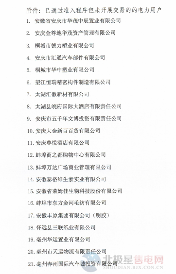 安徽:關于補充確定售電公司與電力用戶代理關系的通知
