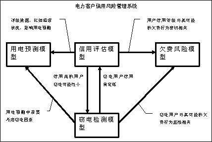 CRD2000系統所提供的模型包括信用評級模型、欠費風險模型、竊電檢測模型和用電預測模型之間的關系如下: