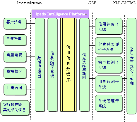 電力客戶信用風險管理系統(以下簡稱CRD2000)系統提供符合國際國內標準的客戶信用評價體系和模型;提供欠費風險預警機制;在客戶用電情況分析的基礎上,提供竊電行為檢測手段,并將竊電行為的查處與客戶信用評級聯系起來,形成強大社會監督和威懾作用;利用用電企業的信用數據和網上公開信息,將產業政策、經濟形勢、經營狀況、市場環境等外部因數納入電量的預測中,建立更加準確的預測方法,提高用電預測的精度。