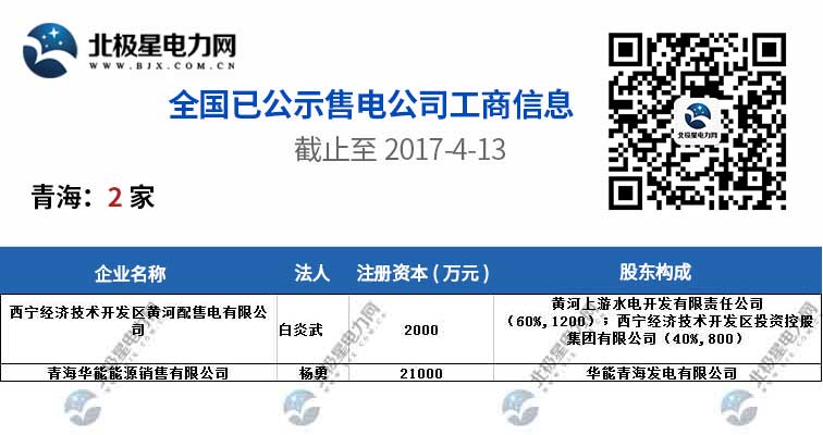 全國已公示1371家售電公司名單(截止2017-4-13)