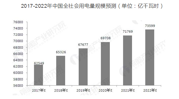 據預計,未來幾年,我國電力行業的市場規模增速約為3%左右,到2022年行業的市場規模將超過7萬億千瓦時,這意味著售電市場容量還有巨大的增長空間。