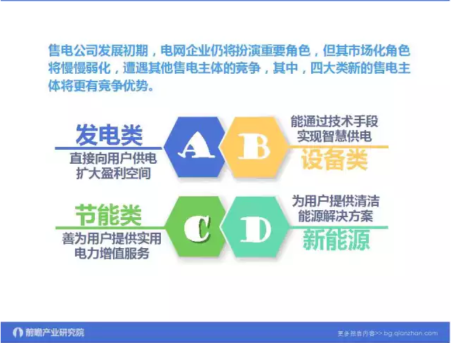 據媒體報道,電力體制改革6個配套文件即將出臺,售電側改革試點進入倒計時。新電改會帶來很多巨大商機,比如售電制改革,鼓勵社會資本市場進入,包括配電領域混合所有制改革。所以從售電公司角度看,更多的關注電