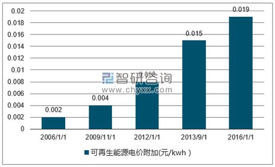 我國目前主要以征收可再生能源發(fā)展基金的形式對新能源進行補貼,這筆基金來源于兩部分, 主要是可再生能源電價附加和少部分財政公共預(yù)算。對于可再生能源電價附加的征收標準, 我國目前共經(jīng)歷了 5 次調(diào)整。根據(jù)財政部、國家發(fā)改委發(fā)布的《關(guān)于提高可再生能源發(fā)展基 金征收標準等有關(guān)問題的通知》,從 2016年1月 1 日起,將可再生能源電價附加增加至 1.9 分/千瓦時,相比上一次 2013年9月 1 日規(guī)定的 1.5 分/千瓦時,上漲了 26.7%。同時,《通知》 還強調(diào),要切實加強企業(yè)自備電廠等基金征收管理,各地不得擅自減免或緩征。