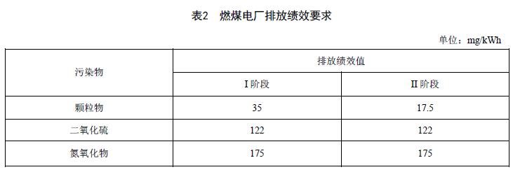 4.2.2自2018年10月1日起,現有單臺出力300MW及以上的發電機組配套的燃煤發電鍋爐以及其他燃煤發電鍋爐執行表2中II階段規定的排放績效值。