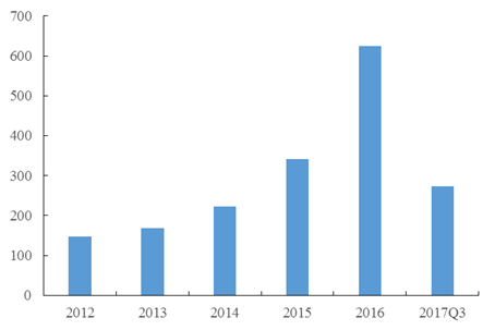 據(jù)統(tǒng)計,2016年垃圾焚燒發(fā)電中標(biāo)/簽約項目約為147個,2017年前三季度垃圾焚燒發(fā)電中標(biāo)/簽約項目約為54個。