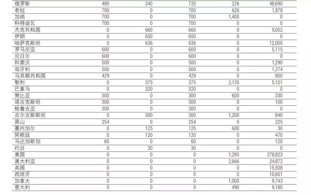 如表3所示,燃煤電廠仍然在60個國家內積極擴張。在這60個國家之中,15個國家的燃煤電廠項目占據了90%的新增裝機容量。本報告接下來將對這些熱點國家進行逐一分析,并對美國和歐盟進行簡要闡述。