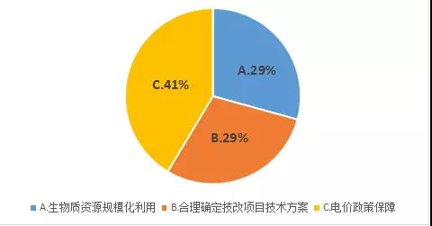 41%的受訪者認為保障電價政策是促進燃煤生物耦合發電技改試點工作的最佳方式。認為生物質資源規?;煤秃侠泶_定技改項目技術方案的受訪者比例相當。