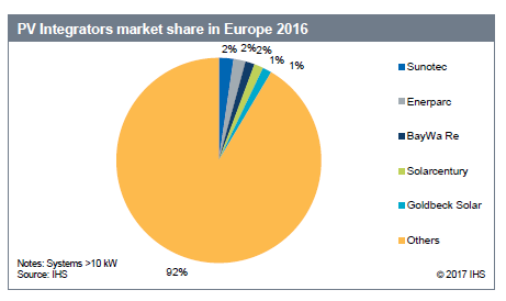 歐洲仍然是高度分散的光伏市場(chǎng),幾乎沒(méi)有大型項(xiàng)目或集中投資組合。