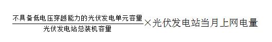 若具備低電壓穿越的光伏電站仍在低電壓穿越范圍內(nèi)發(fā)生脫網(wǎng),自脫網(wǎng)時刻起該光伏發(fā)電站同型機(jī)組禁止并網(wǎng),直至完成低電壓穿越改造。同時在該光伏發(fā)電站同型機(jī)組重新完成整改并提供檢測認(rèn)證報告前,當(dāng)月按以下公式考核: