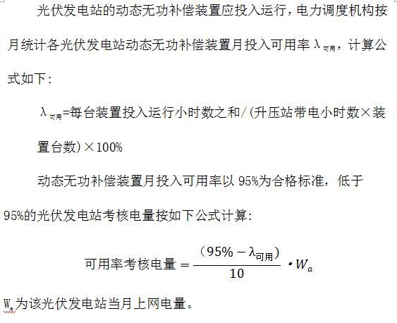 (二)動態(tài)無功補(bǔ)償裝置性能(包括容量配置和調(diào)節(jié)速率)不滿足電網(wǎng)要求的光伏發(fā)電站在完成整改前,每月按當(dāng)月上網(wǎng)電量的1%考核。