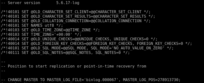 6. 在備份文件weibo.sql查看binlog和pos值