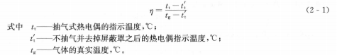 帶水冷套的抽氣式熱電偶的測量精確度不僅取決于抽氣速度的大小和屏蔽效果,而且最佳抽氣速度還受氣流溫度、熱電偶直徑以及屏蔽結構形狀的影響。為此,定義了抽氣式熱電偶的效率