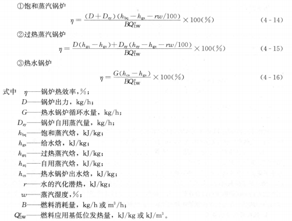 說明:(1)當使用鍋爐系統以外的熱源對燃料和空氣進行加熱時,來熱量QwL。(kj/kg或kj/m3)應測算并計入鍋爐輸入熱量中。