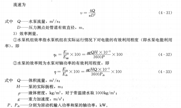 求水泵機組的效率時需要測量原動機的輸入功率P,可采用三相累計電表讀數或參閱異步電動機輸入功率測量方法。