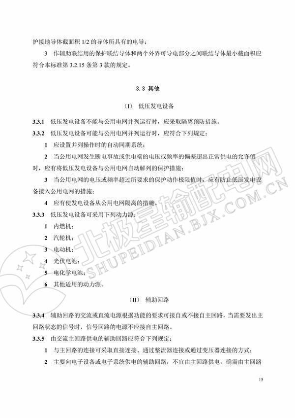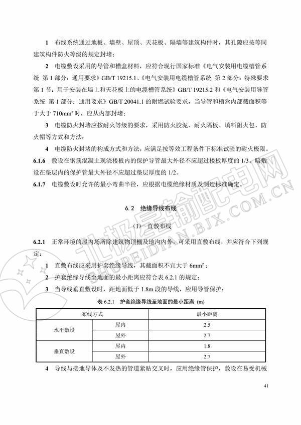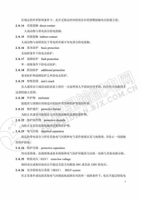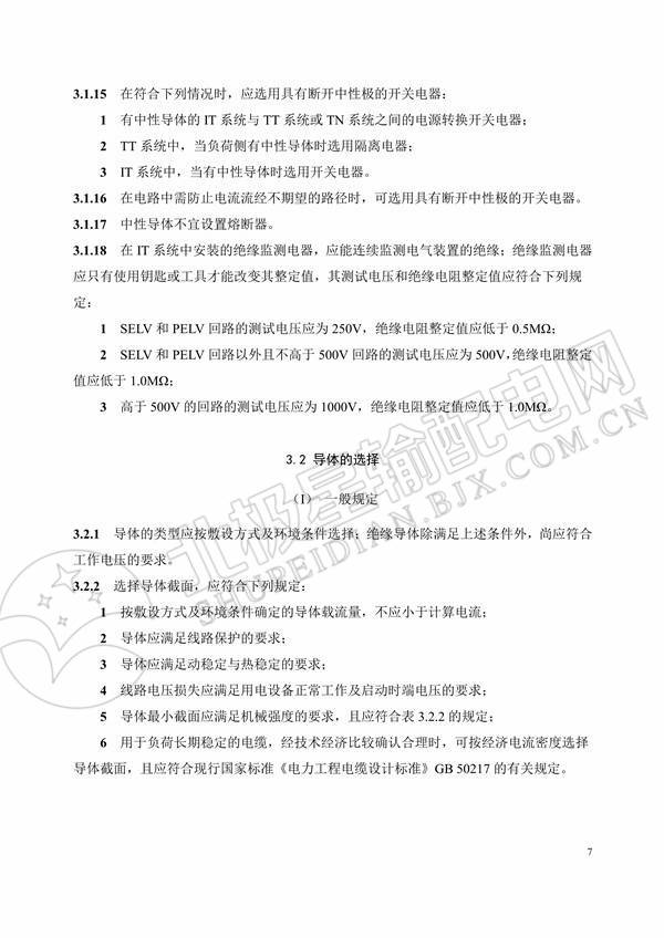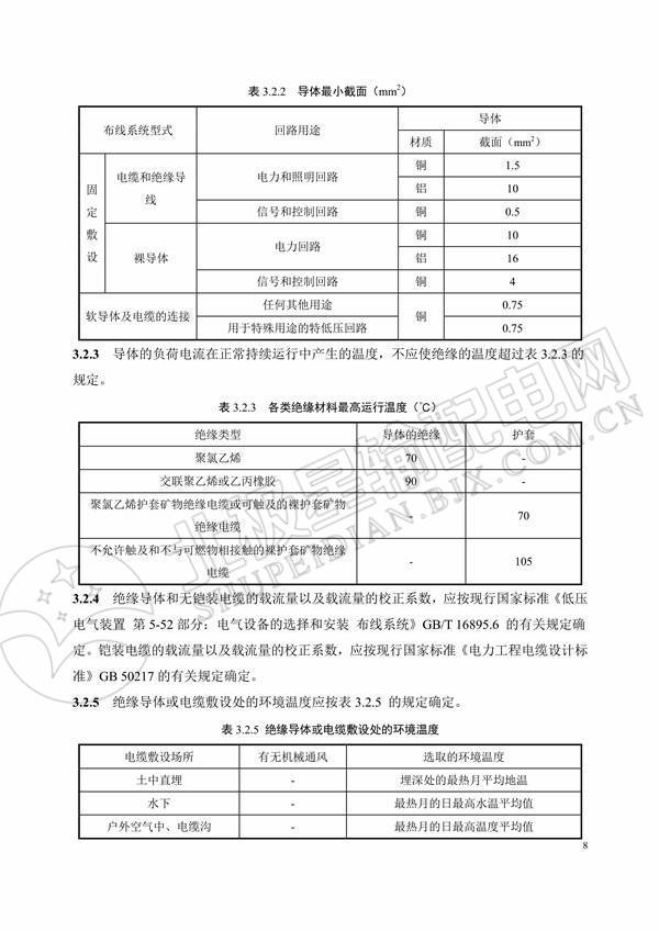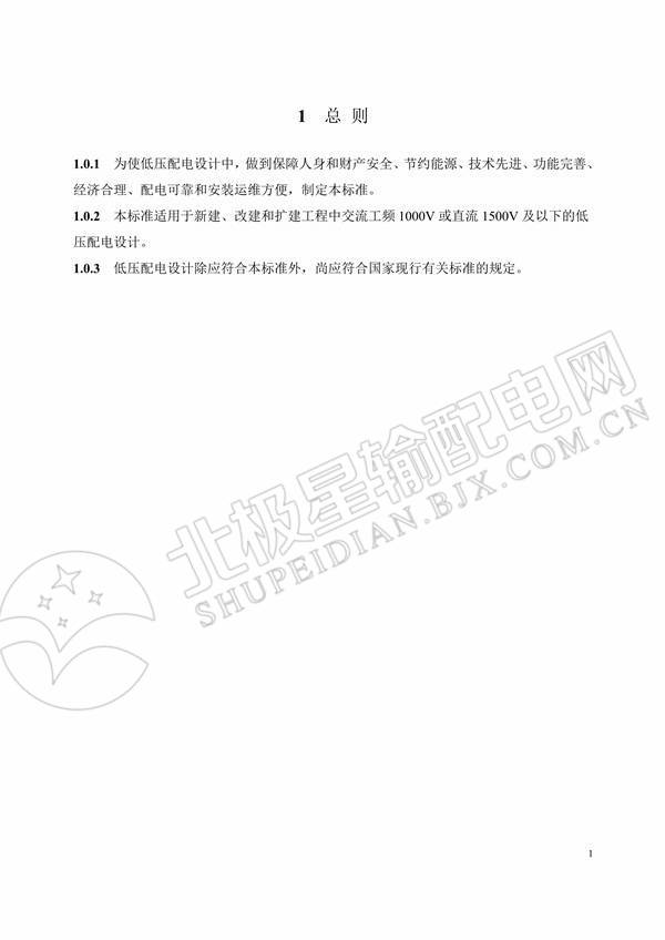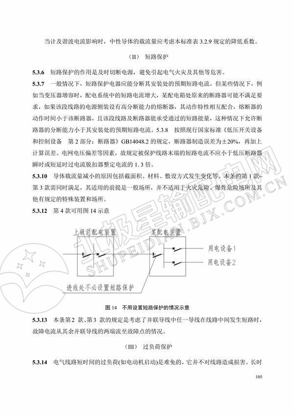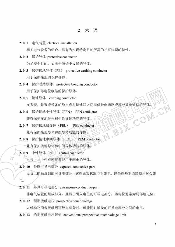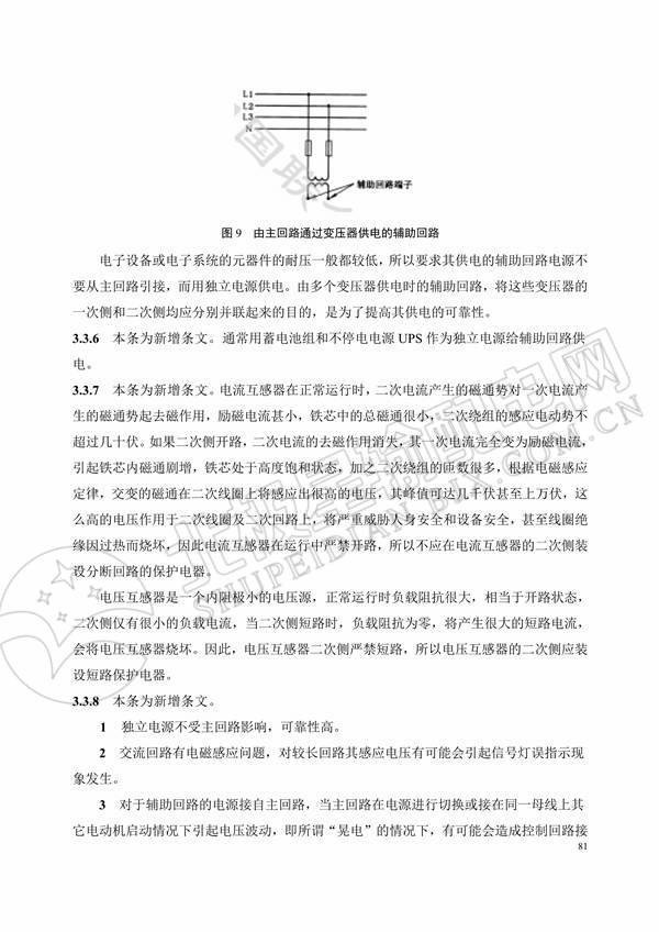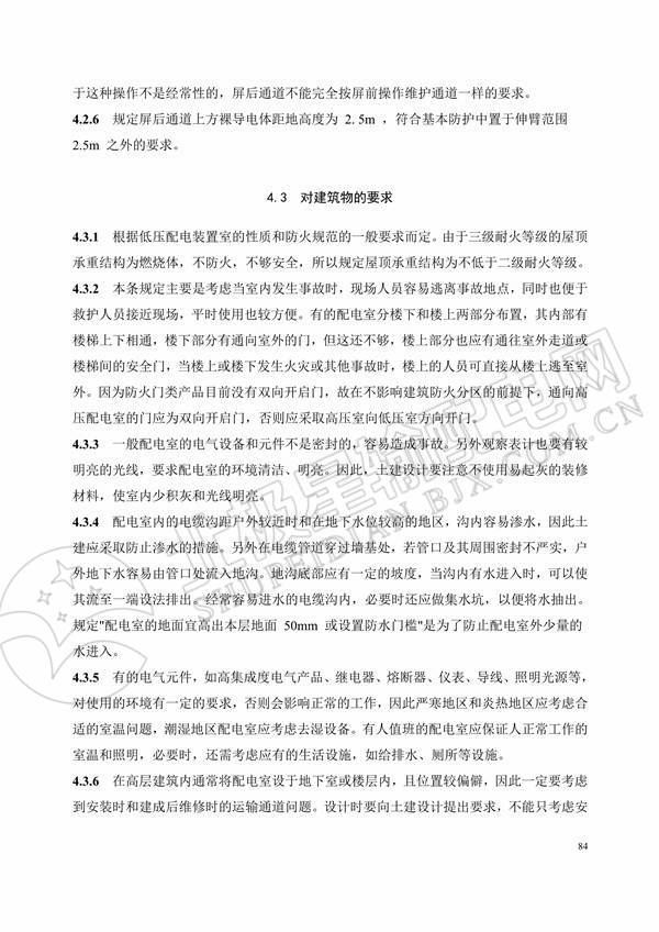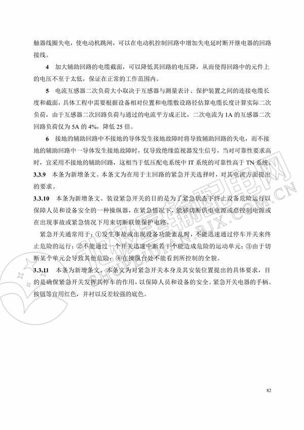 本標準共分六章和2 個附錄,主要技術內容包括:總則、術語、電器和導體的選擇、配電裝置的布置、安全防護、配電線路的敷設等。