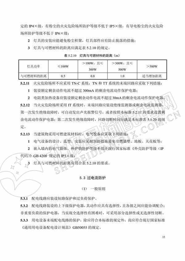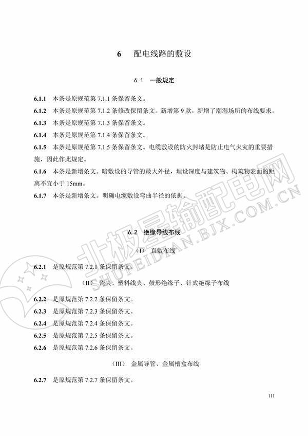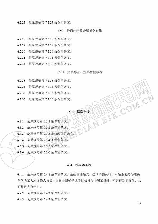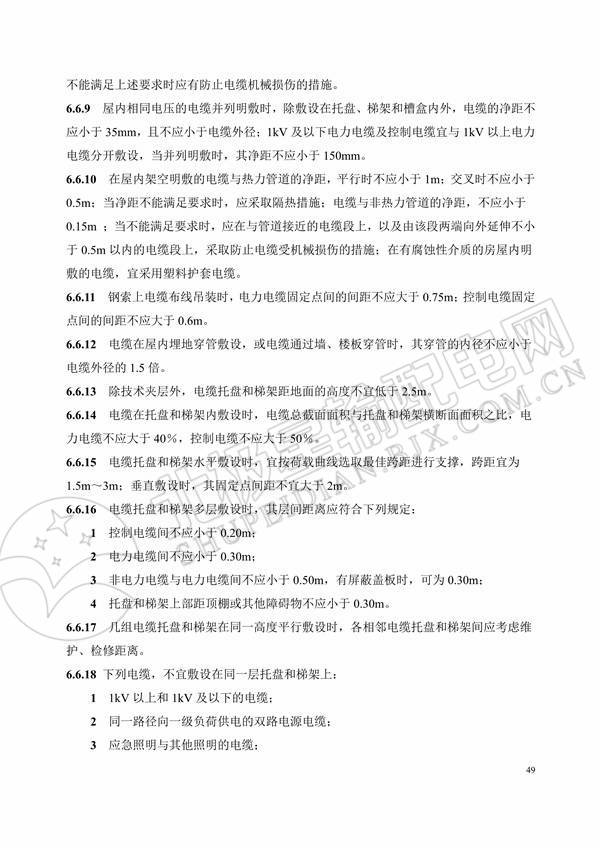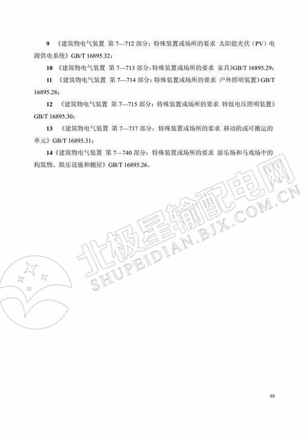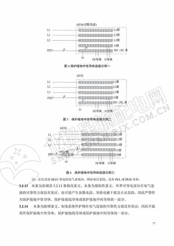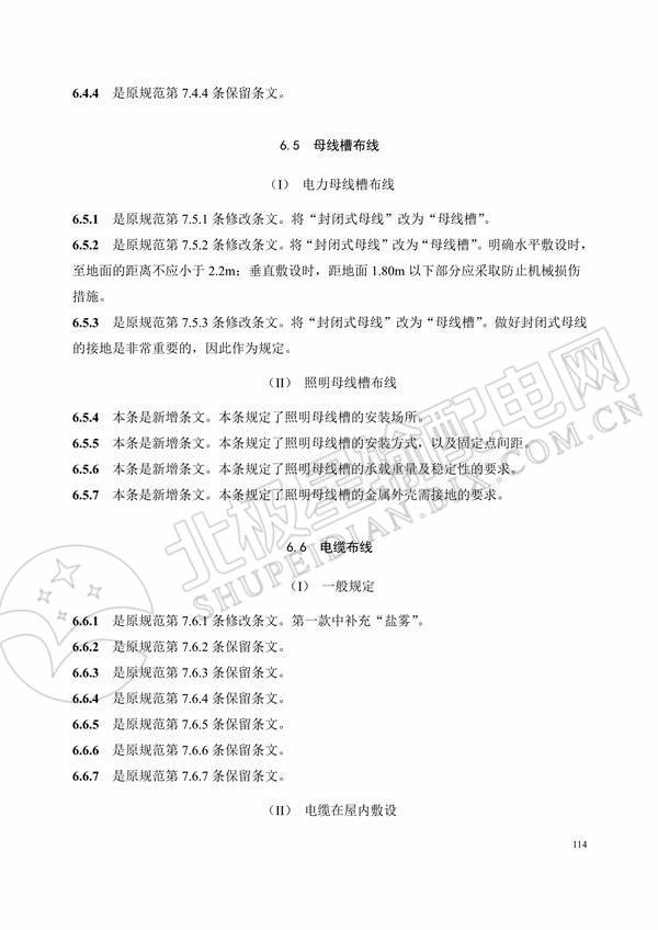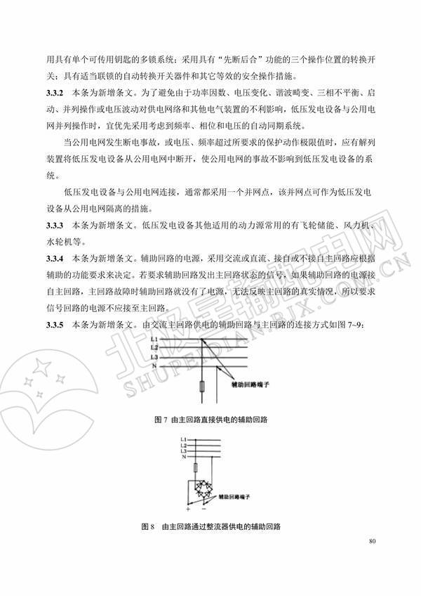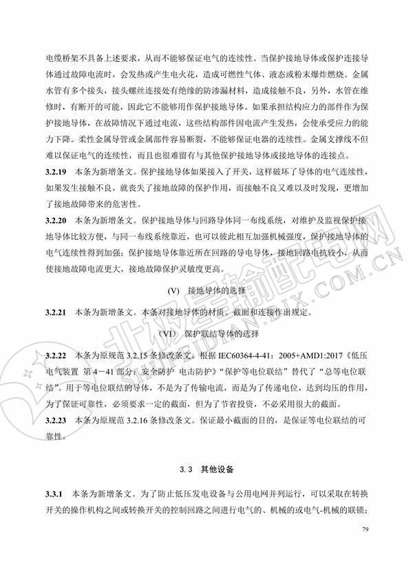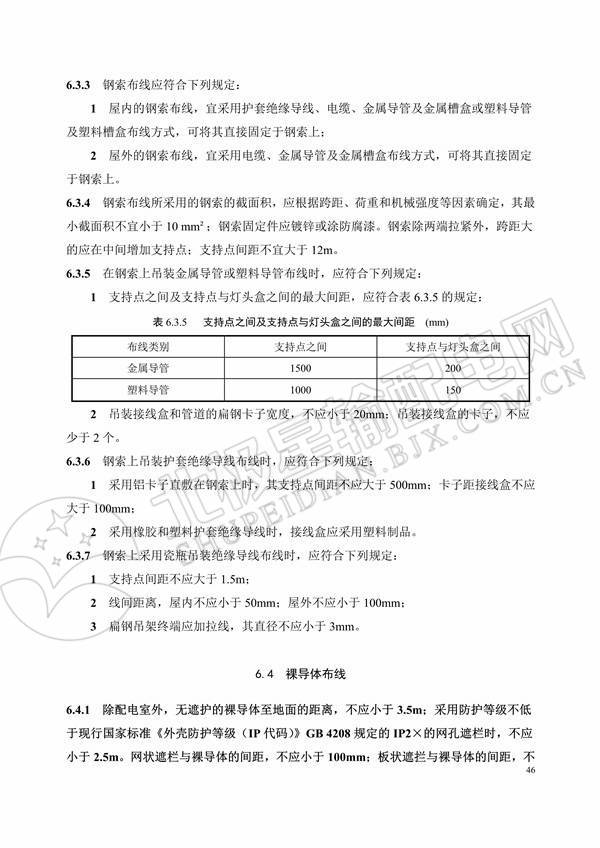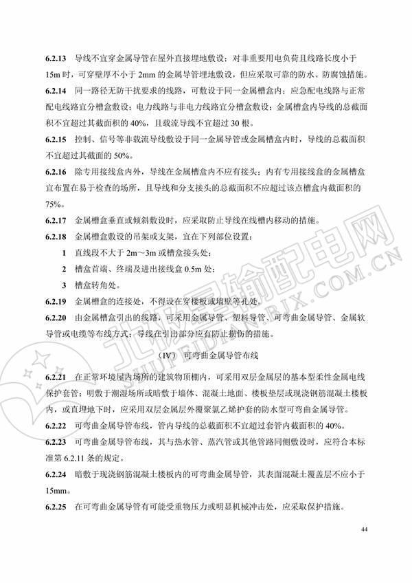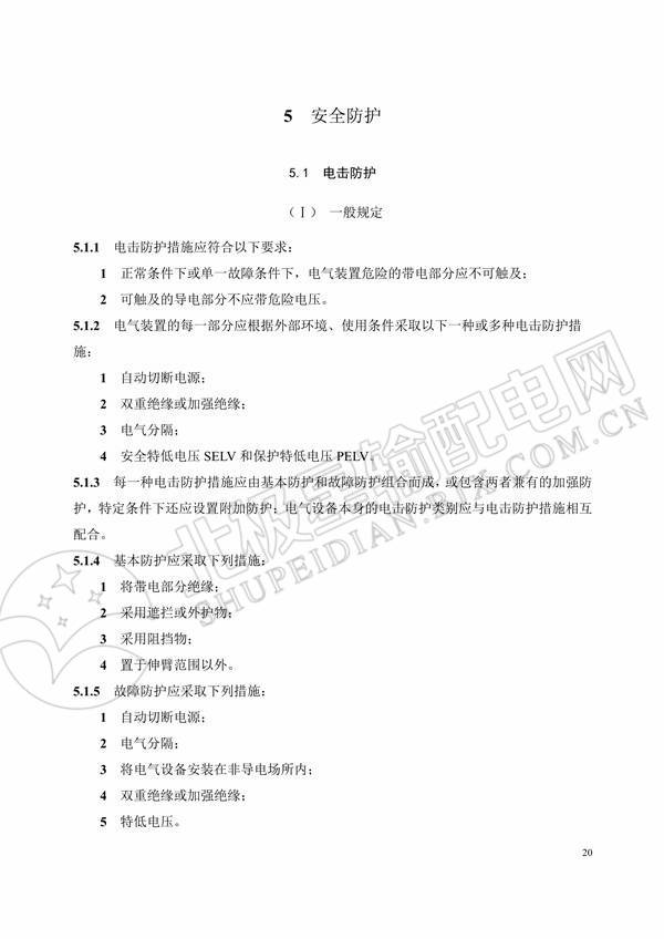 本標準共分六章和2 個附錄,主要技術內容包括:總則、術語、電器和導體的選擇、配電裝置的布置、安全防護、配電線路的敷設等。