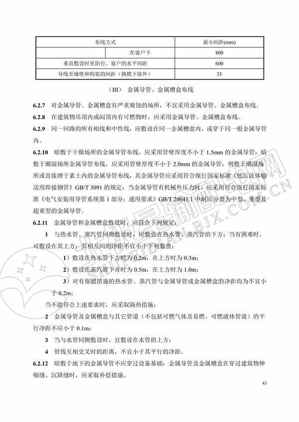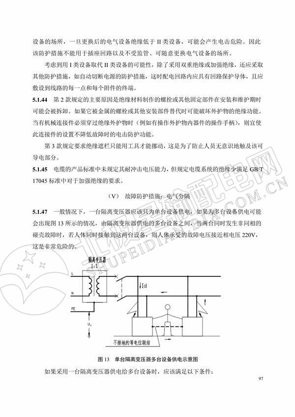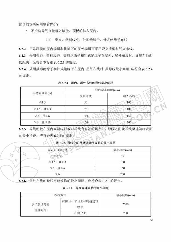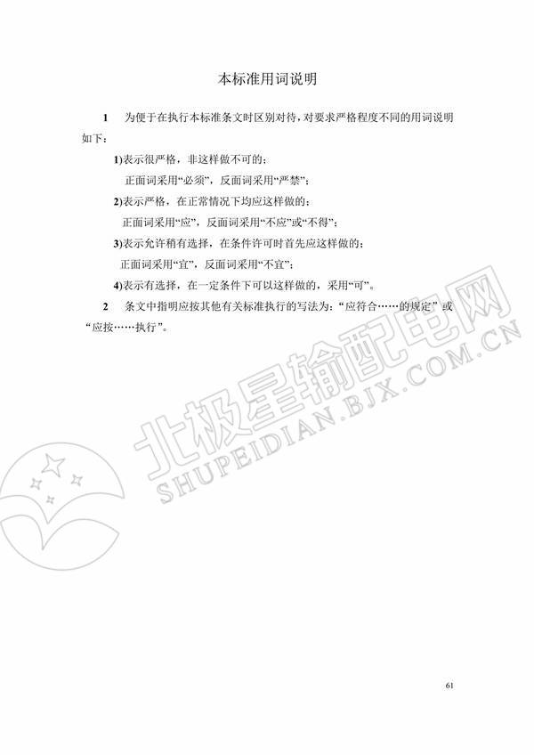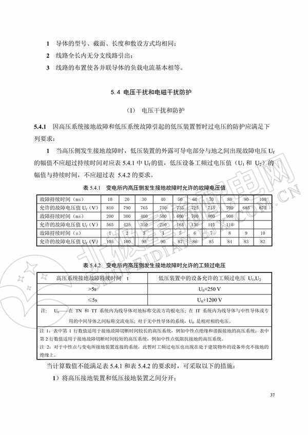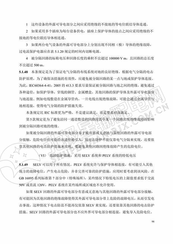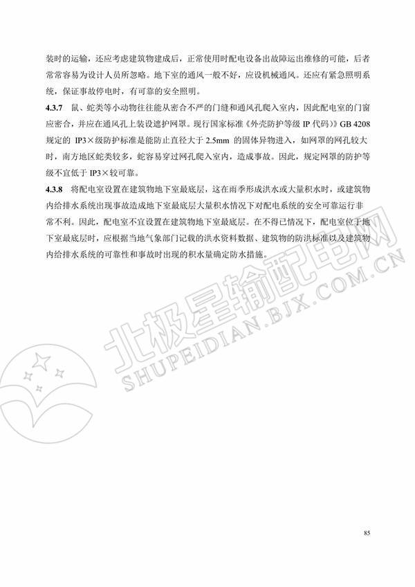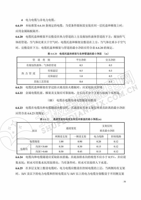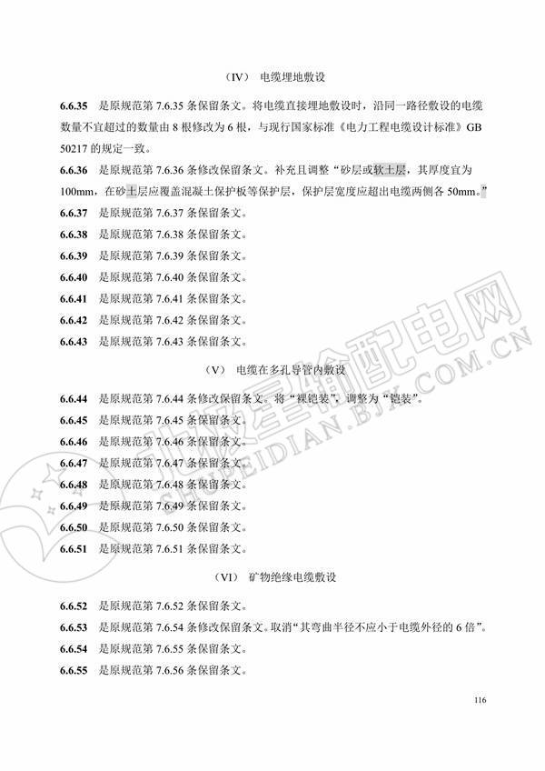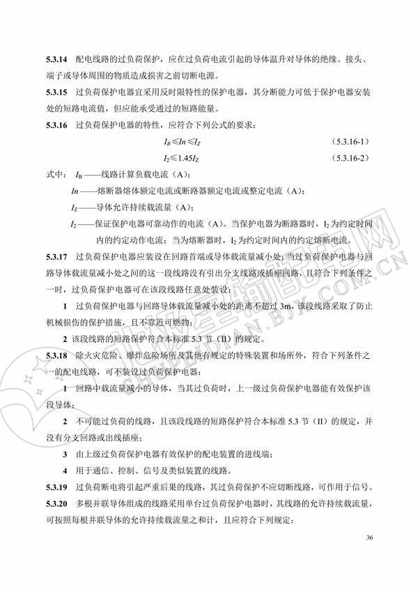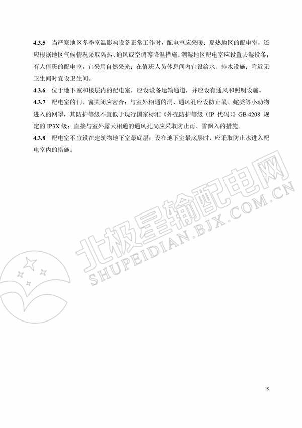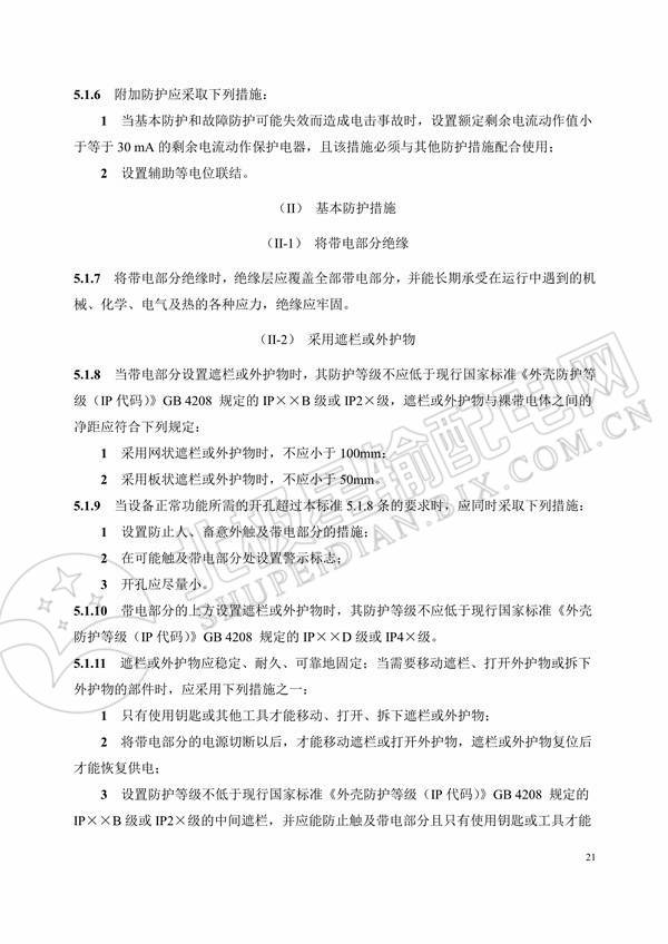 本標準共分六章和2 個附錄,主要技術內容包括:總則、術語、電器和導體的選擇、配電裝置的布置、安全防護、配電線路的敷設等。