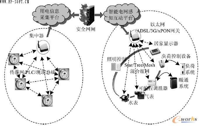 互動(dòng)性作為智能電網(wǎng)的另一個(gè)重要特征,在智能用電環(huán)節(jié)上體現(xiàn)得尤為明顯。而感知作為物聯(lián)網(wǎng)的基本特性,除利用多種手段實(shí)現(xiàn)泛在的物體感知外,還必須充分利用互聯(lián)網(wǎng)和移動(dòng)通信的資源實(shí)現(xiàn)人與物、物與物之間無(wú)所不在的連接與互動(dòng)。作為智能電網(wǎng)互動(dòng)性的集中體現(xiàn),智能用電肩負(fù)著與用戶建立密切、負(fù)責(zé)的交互關(guān)系,實(shí)現(xiàn)供需互動(dòng)的重任。因此,相對(duì)于輸電線路、無(wú)人值守變電站和配電網(wǎng)自動(dòng)化系統(tǒng),面向智能用電的ICT 平臺(tái)要求區(qū)域更廣、業(yè)務(wù)更多的感知與互動(dòng)。這種感知與互動(dòng)的開放性和智能電網(wǎng)安全通信的要求是矛盾的,也只有解決了這一矛盾,才能真正找到面向智能電網(wǎng)的物聯(lián)網(wǎng)應(yīng)用模式。