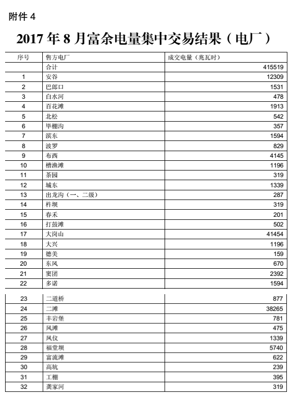 從四川電力交易中心獲悉,2017年7月24日和25日,四川電力交易中心分別組織開展了8月份月度直購電和富余電量交易。共有91家用電企業和150家發電企業成交,成交電量85564兆瓦時。具體公告如下: