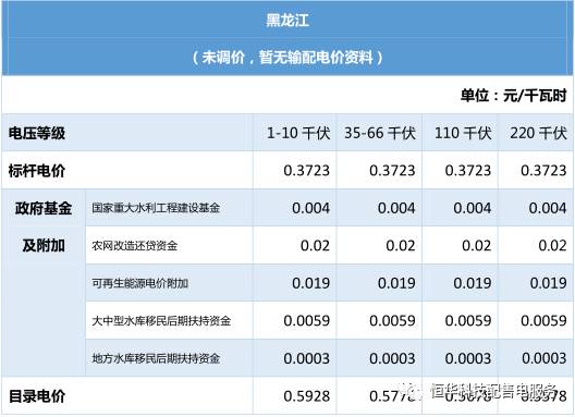 全國各省電價匯總之華北、華東、東北區域