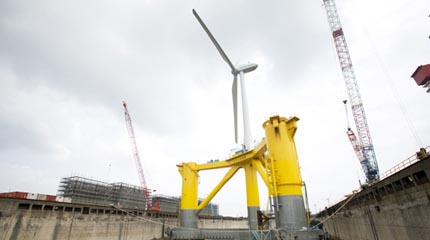 最終組裝就是將三井造船的“浮體”放置于這個(gè)干船塢中,然后在上面安裝日立制作所的風(fēng)車。