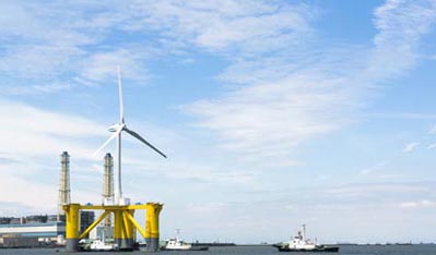 之后,重新將浮體式風(fēng)車連接在將其拖拽到福島縣小名浜港的船舶上,移動(dòng)到距海岸2公里的海上。之后注入壓載水,停泊一夜進(jìn)行穩(wěn)定。