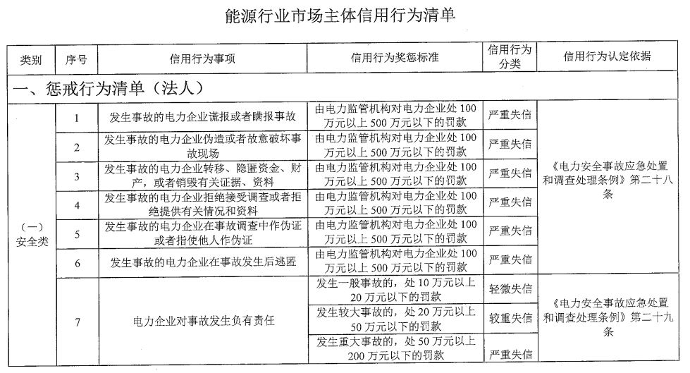 能源局發布《能源行業市場主體信用行為清單(2018版)》