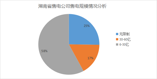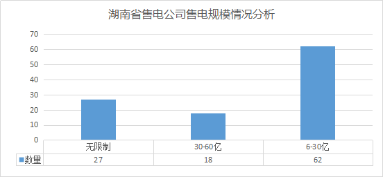 通過對售電公司的公示資產分析,無電量限制規模的售電公司共計27家,占比為25%;30-60億度銷售規模的共計18家,占17%;6-30億度銷售規模的共計62家,占58%。