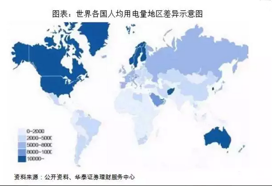 "一帶一路"覆蓋國家總人口達到46億,而絕大部分國家人均用電量和發達國家差距甚遠,具有廣闊的市場潛力。世界國家可以按照人均用電量分為四檔:北美、北歐及澳大利亞等少數發達國家,人均用電量在一萬千瓦時以上,處于第一檔;德國、法國等大部分發達國家人均用電量則在5000-10000千瓦時,處于第二檔;中國、哈薩克斯坦、東歐等新興市場人均用電量約為2000-5000千瓦時,處于第三檔;人均用電量不足2000千瓦時的國家則主要分布在中亞、中亞、非洲,處于第四檔。絕大部分"一帶一路"覆蓋國家處于第三檔和第四檔,隨著社會的發展當地本身具有加大電力投資的剛性需求。