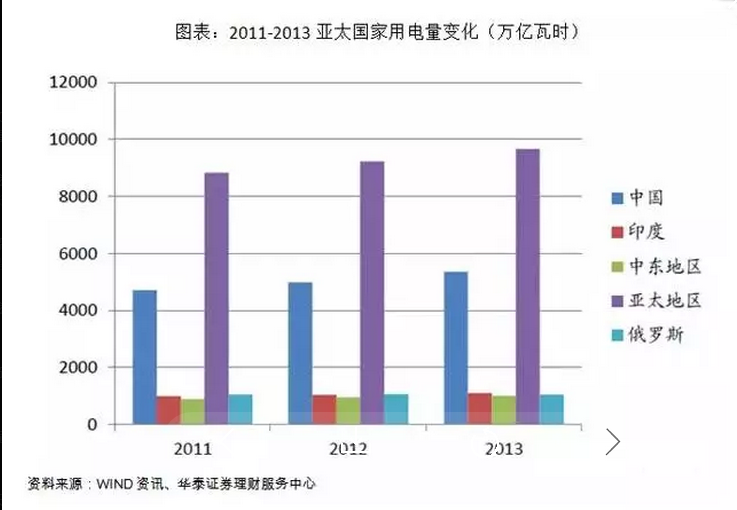 包括中國、印度、中東在內的亞太地區用電量持續上升,相關國家電力設備需求也迅速增加。"一帶一路"戰略的落實有望刺激相關國家的電網投資量,帶動中國電力設備企業出口。