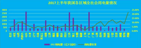 數據|2017年中國電力市場中期數據報告:上半年我國西北、華北地區全社會用電量增速超預期