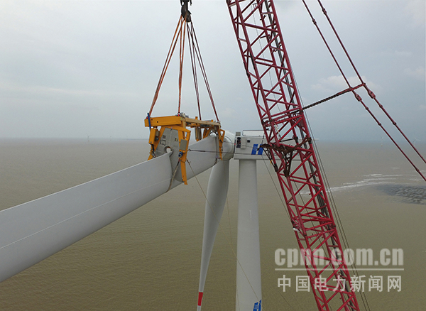 中電新聞網(wǎng)訊 通訊員 黃海 報道 9月3日,華能集團江蘇南通市如東近海300兆瓦“雙十”風(fēng)電站最后一臺機組完成吊裝。