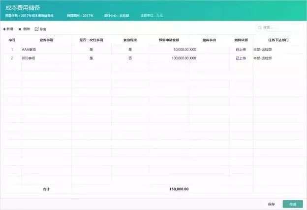 通過將財務(wù)制度內(nèi)化到成本費用儲備微應(yīng)用,將成本費用預(yù)算申請過程,轉(zhuǎn)化為業(yè)務(wù)人員能看懂、會使用的簡單操作。例如優(yōu)化設(shè)計編制表格,業(yè)務(wù)人員直接填寫數(shù)量,自動計算得到事項預(yù)算金額,與業(yè)務(wù)計劃無縫銜接。