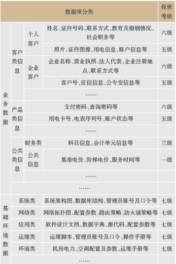 根據上述分類定義,可由公司各業務部門牽頭,聯絡相關信息系統運維單位,共同從業務和技術上對單一數據項分類進行保密等級賦值,隨后依據