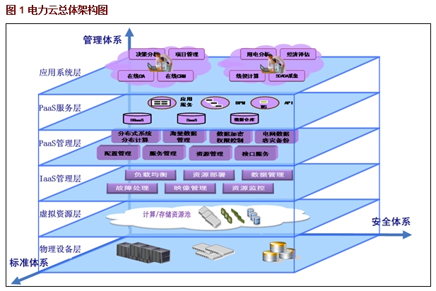 7)電力云標(biāo)準(zhǔn)體系:相應(yīng)的電力云標(biāo)準(zhǔn)規(guī)范集,包括硬件資源接入標(biāo)準(zhǔn)規(guī)范、數(shù)控設(shè)備接入標(biāo)準(zhǔn)規(guī)范、軟件資源的集成規(guī)范和用戶與終端交互操作標(biāo)準(zhǔn)規(guī)范等。