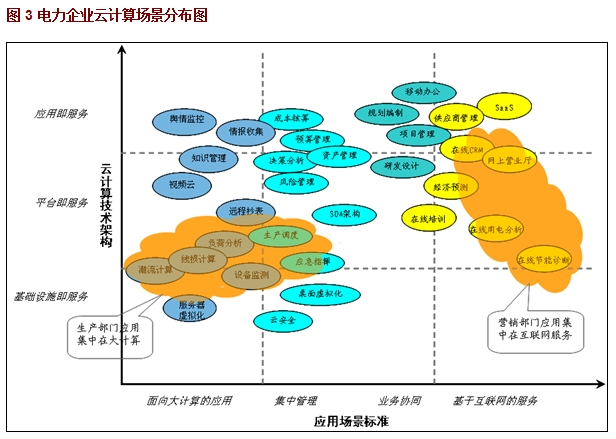 根據(jù)云計(jì)算的特點(diǎn),云計(jì)算在電力行業(yè)有四類應(yīng)用具有較為突出的應(yīng)用價(jià)值:第一類:支持動(dòng)態(tài)組織和業(yè)務(wù)協(xié)同的應(yīng)用,如根據(jù)業(yè)務(wù)發(fā)展增減新的業(yè)務(wù)部門,以及進(jìn)行業(yè)務(wù)的動(dòng)態(tài)調(diào)整。第二類:提供集中管理和集成共享的應(yīng)用,如在財(cái)務(wù)、人力、內(nèi)控等管控部門,進(jìn)行業(yè)務(wù)數(shù)據(jù)的決策分析和集中管理。第三類:基于網(wǎng)絡(luò)渠道和面向服務(wù)的應(yīng)用,如供電企業(yè)基于互聯(lián)網(wǎng)為電力用戶提供個(gè)性化、網(wǎng)絡(luò)化、隨身化的服務(wù)。第四類:需要高計(jì)算和高存儲(chǔ)能力的應(yīng)用,如生產(chǎn)運(yùn)營(yíng)部門進(jìn)行海量的生產(chǎn)數(shù)據(jù)存儲(chǔ),以及進(jìn)行潮流計(jì)算、海量數(shù)據(jù)搜索等大數(shù)據(jù)量分析。
