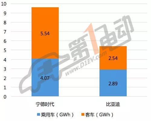 2017年寧德時代和比亞迪動力電池供應量對比(未包含專用車)
