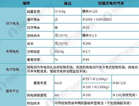 圖表1:增程式電動汽車主要技術指標