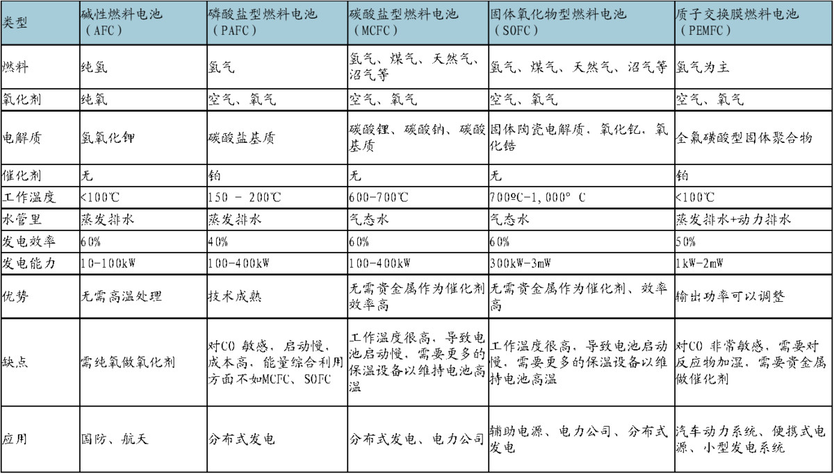 各類燃料電池指標及應(yīng)用領(lǐng)域概述