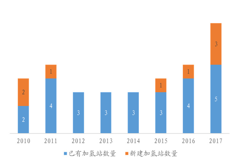 截至2018年5月,中國在運營的加氫站數(shù)量已經(jīng)達到12個,較2017年底又增加了4個。盡管目前已有另外19個加氫站正在規(guī)劃建設(shè)中,但目前的加氫站密度仍然不足以支撐燃料電池車的商業(yè)化推廣。高昂的建站成本及運營成本、國產(chǎn)核心設(shè)備缺失使得加氫站數(shù)量難以在短期內(nèi)大幅提升。