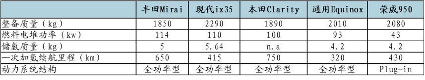 主流FCV與我國已上市FCV參數(shù)對比