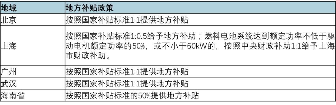 燃料電池汽車地方補貼標準